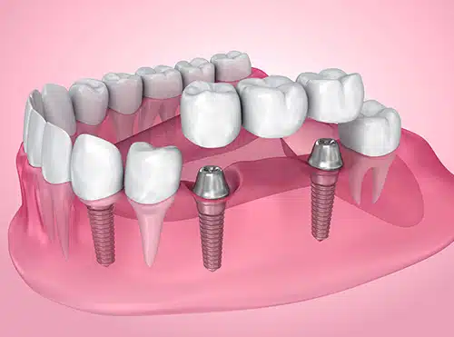 For multiple missing teeth, an implant-supported bridge provides a stronger, more stable alternative to traditional bridges
